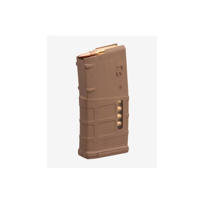 Designed specifically for SAAMI-spec ammunition, the PMAG 20 LR/SR GEN M3 Window is less than half the weight of standard issue steel magazines and maintains a service life round count approximately equal to the rifle barrel itself. Accessories designed for the 7.62X51 NATO line of PMAGs are also compatible with the PMAG 20 Window.